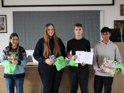 V pátek 21. 11. proběhl další ročník Náboje Junior. Soutěž v matematice a fyzice probíhá současně v několika státech – kromě České republiky se letos zúčastnili i žáci z Rakouska, Belgie, Nizozemí, Chorvatska, Polska a Slovenska. Tým ve složení Kateřina Veselá, Kristýna Flamová, Minh Nguyen a Tobiáš Běhůnek získal v našem soutěžním místě 1. místo. …